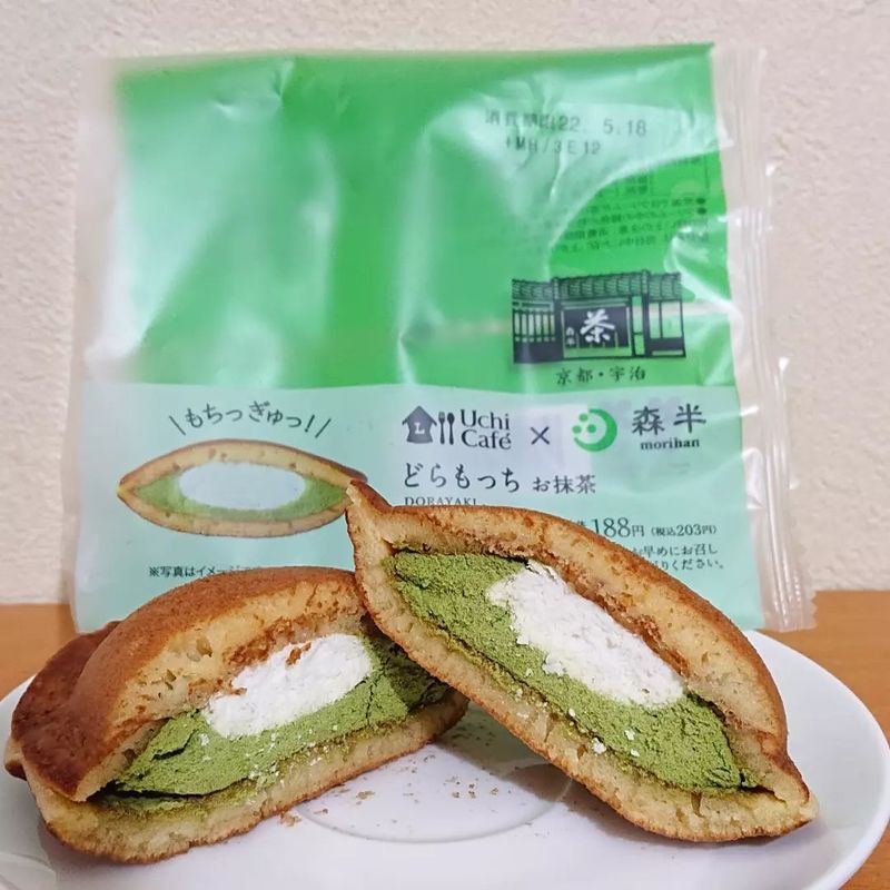 This product is a matcha flavored dorayaki, which is a collaborative effort between Lawson's Uchi Cafe range and Morihan Kyoto, a matcha purveyor. The product was priced at 203 yen including tax.