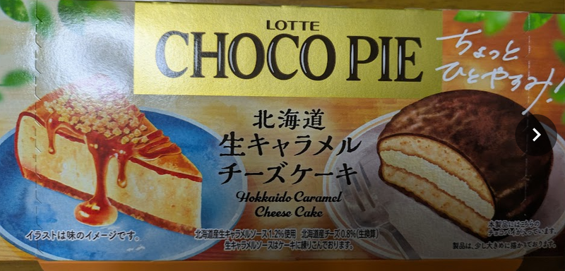 Lotte's Choco Pie Hokkaido Caramel Cheese Cake is a limited-edition Choco pie with a rich creamy filling and chocolate covered, blending sweetness and tang.