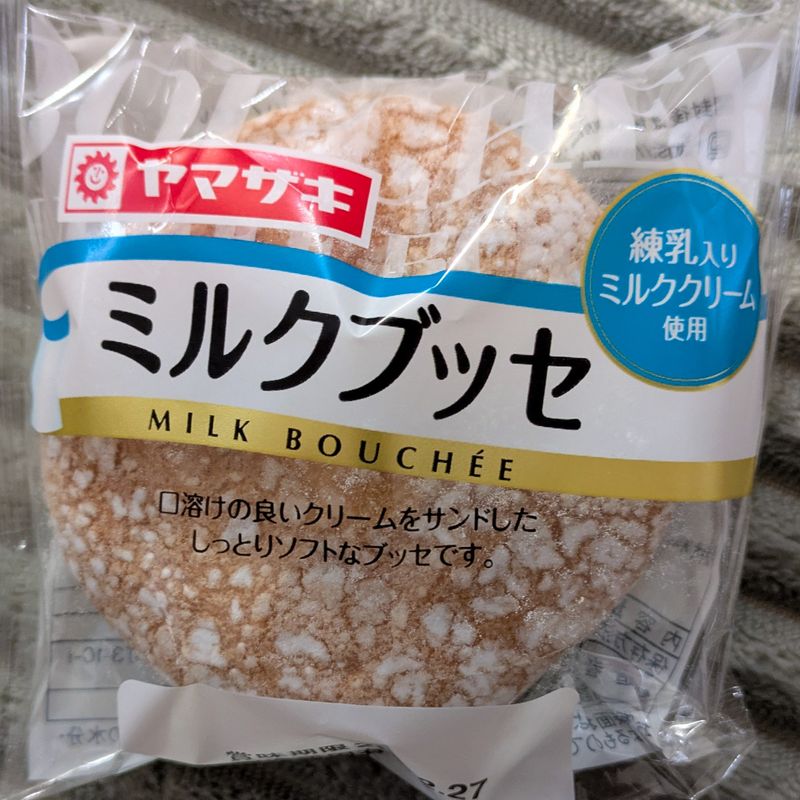 A soft and moist bouchée, ブッセ, a Japanese small puff pastry, with a melting cream center made from condensed milk by Yamazaki Bakery. Available widely in Japan.