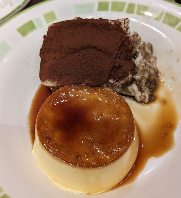 A classic pairing of silky Italian custard pudding and rich tiramisu from Saizeriya, an affordable family restaurant. Sweet, creamy, and lightly bitter - a very satisfying duo!