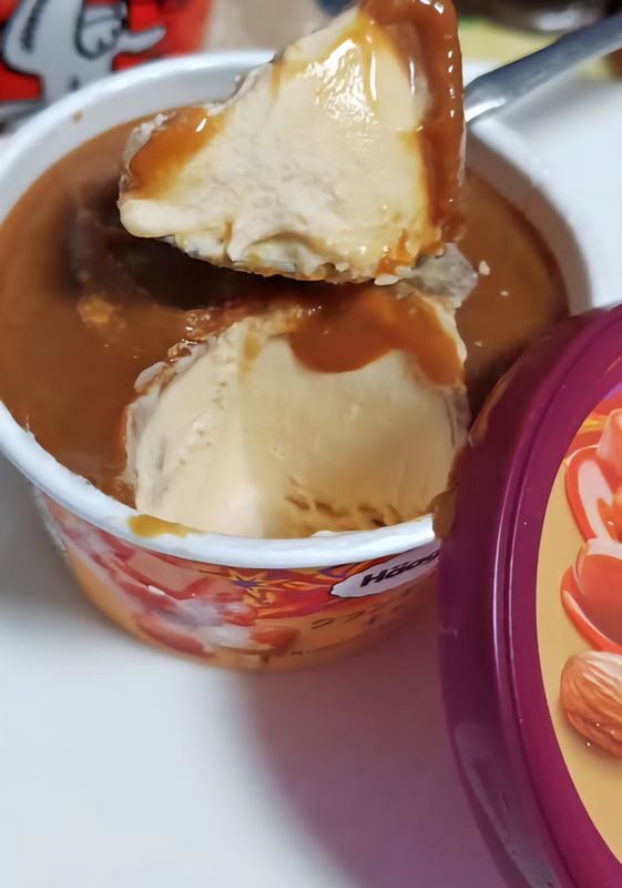 This product is the new crunchy almond caramel ice cream from Haagen Dazs, and it's available for a limited time. I found it at 7-11, and it was priced at 351 yen including tax.