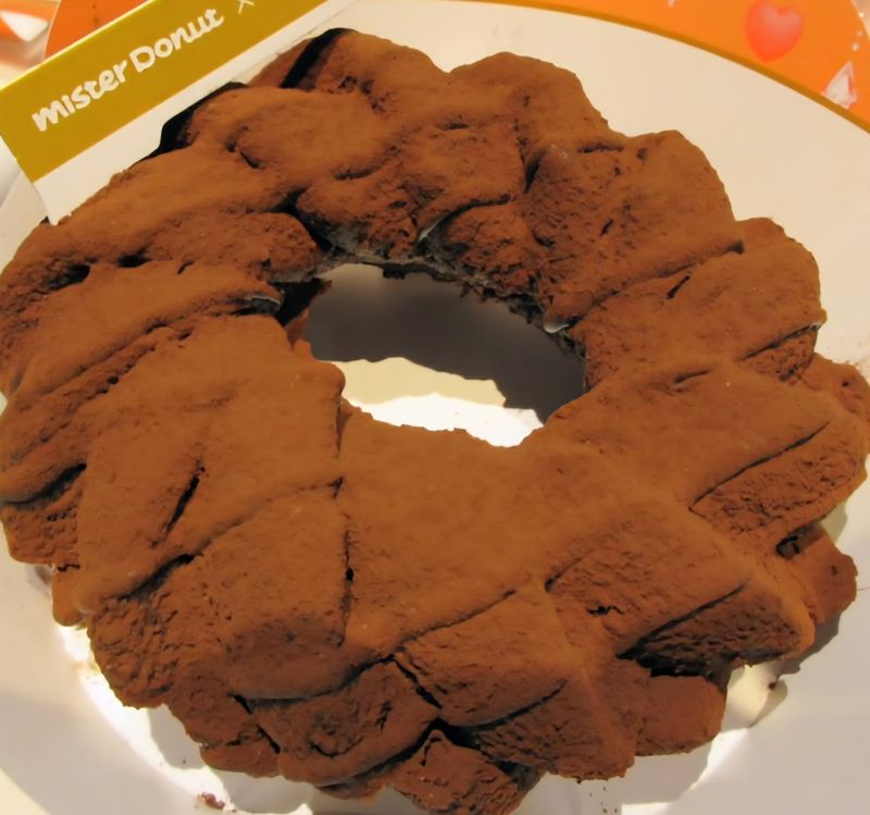 This product is a Chocolate French Caramel Praline Donut, and it's a limited-time collaboration offering between Mister Donut and Godiva. It was priced at 297 yen for eat-in, slightly cheaper for to-go.