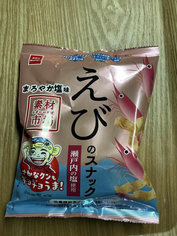 Confectioner Oyatusu Company produces Ebi no Sunakku. The wheat-based cracker is made with shrimp powder, including amaebi shrimp powder, and Seto Uchi sea salt.