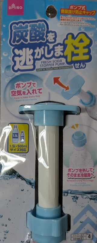 This is a carbonation‑preserving pump cap sold at DAISO. It’s designed to help keep soda fizzy after opening by pumping air into the bottle to maintain internal pressure.