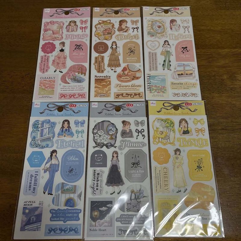 These products are packets of "Ribbon Sucre" stickers with a dreamy, whimsical style to them. I found them at my local Daiso recently and they were priced at 100 yen plus tax.