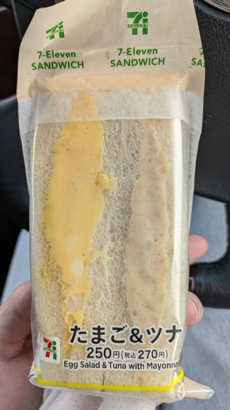 An egg salad and tuna with mayonnaise pair sandwich from convenience store 7-Eleven, available at branches around the country, subject to availability.