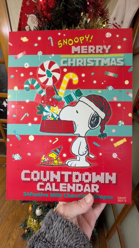 The Snoopy Countdown Calendar is an advent calendar, for counting down the days to Christmas. There are 24 windows on the calendar, each with a different shaped chocolate.