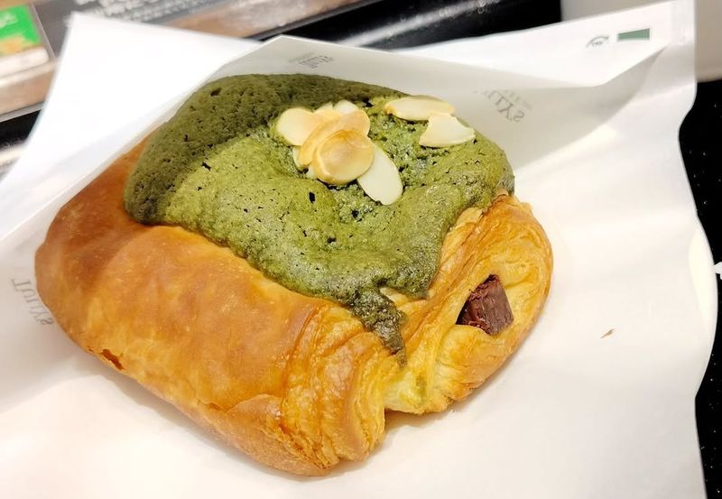 This product is a matcha pain au chocolat, and it's a limited time/seasonal offering from Tully's Coffee stores. It was priced at 380 yen including tax.