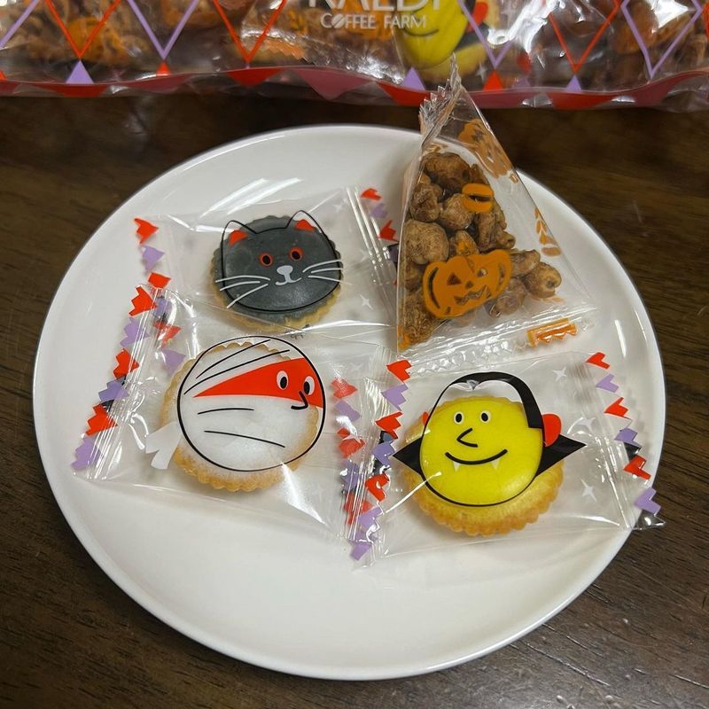 This product is a mix of Halloween crackers and puffed wheat snacks (individually wrapped), and you can find them at Kaldi Coffee Farm stores for 429 yen including tax.