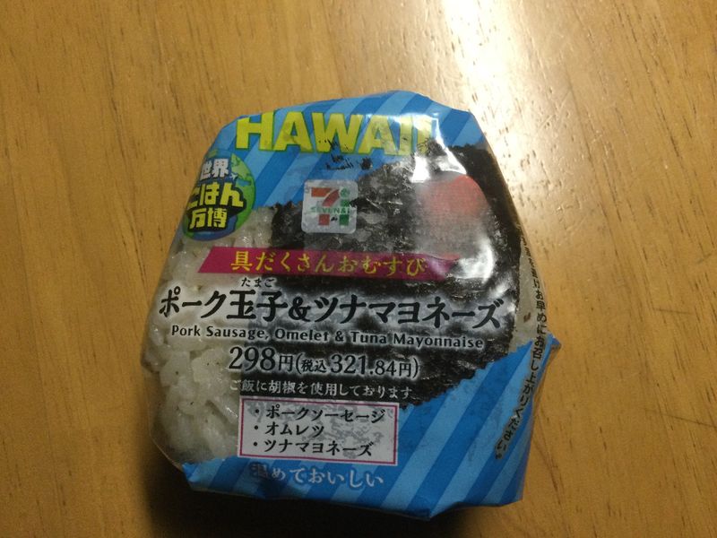 To celebrate the Osaka-Kansai Expo, 7-11 convenience stores produce a series of food items from around the world. The second series includes a Hawaiian-inspired pork, egg, and tuna mayo onigiri.