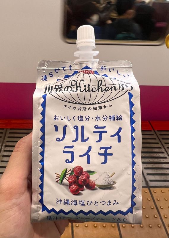 Infused with fruits like grapes, lychee, and grapefruit along with some special salt in Okinawa, this drink can easily be found in convenience stores and supermarkets all over Japan. My husband's student always gives him this and I have had the honor to drink some when he takes them home. This product that I am going to review though is the pouch version of this product as it was a first for me to try it!