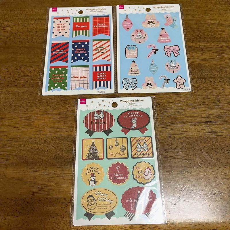 These products are wrapping stickers, each with a Christmassy theme. I found them at my local Daiso recently and each packet was 100 yen plus tax (110 yen in total).