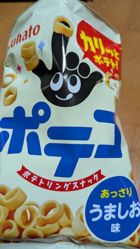Poteco (ポテコ) is a popular Japanese ring-shaped potato snack, known for its crunchy texture and savory flavors like these 'light, delicious saltiness'.