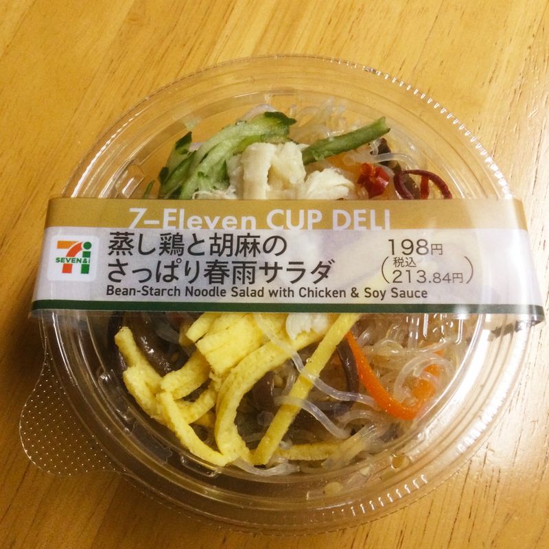 7-11 convenience stores have an extensive lineup of small dishes including this one, bean starch noodles with chicken and soy sauce. They're small servings suitable for one diner.