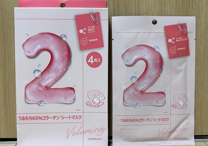 This product is a packet of four collagen masks from the Numbuzin brand. I ordered them online from Amazon Japan, and they were priced at 1090 yen including tax.