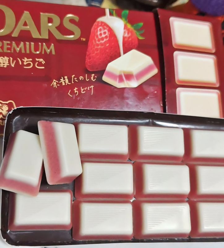 This product is a packet of DARS Premium Fragrant Strawberry chocolates. I found it at my local Family Mart store, and the pack was priced at 261 yen.