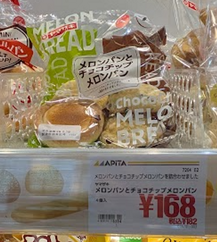 This bakery product is a four‑piece pack with two flavors of melon pan, original melon pan and chocolate chip melon pan. They are not individually wrapped.