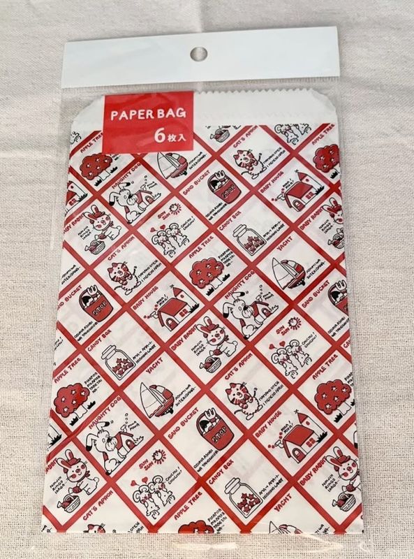 This product is a six pack of cute decorated paper bags which are great for small gifts or candy bags for kids. I purchased them at Seria, and they were the usual 100 yen plus tax.