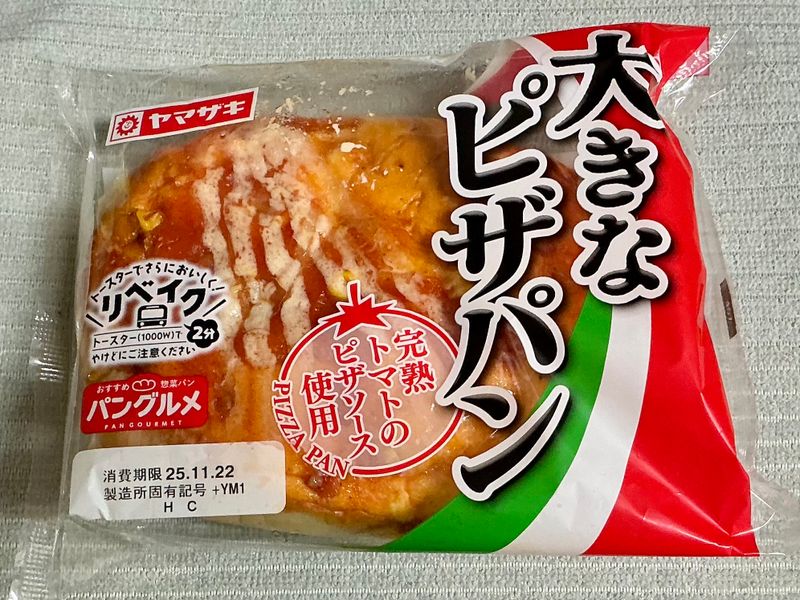 Yamazaki Bakeries supply various sweet and savoury bread products to vending machines. I picked up Ookina pizapan from a Namco-branded vending machine for 160 yen.