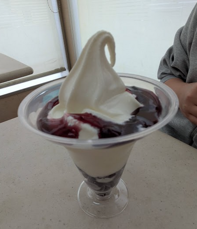 This product is a seasonal delicious soft-serve with whole blueberries, Hokkaido milk based soft-serve ice cream and rich blueberry syrup, from Ministop.