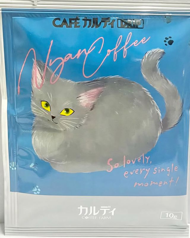 This product is the Kaldi Coffee Farm "Nyan Cat Coffee" which gets released to coincide with Cat Day each year. You get 10 sachets in a box (the four design styles are shown) for 1500 yen.