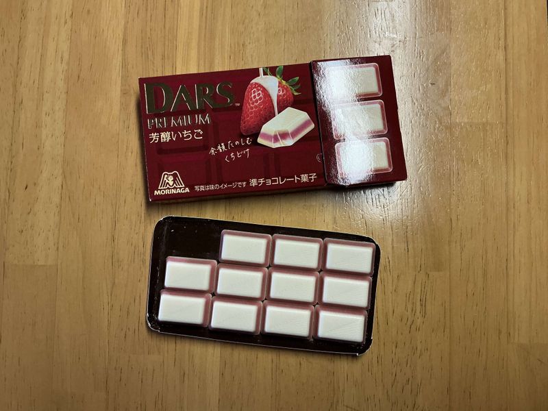Morinaga Confectionery's Dars chocolates includes a "premium" line. This one is Dars Premium Hojun Ichigo. The aromatic strawberry version is 46 grams with twelve tablets.