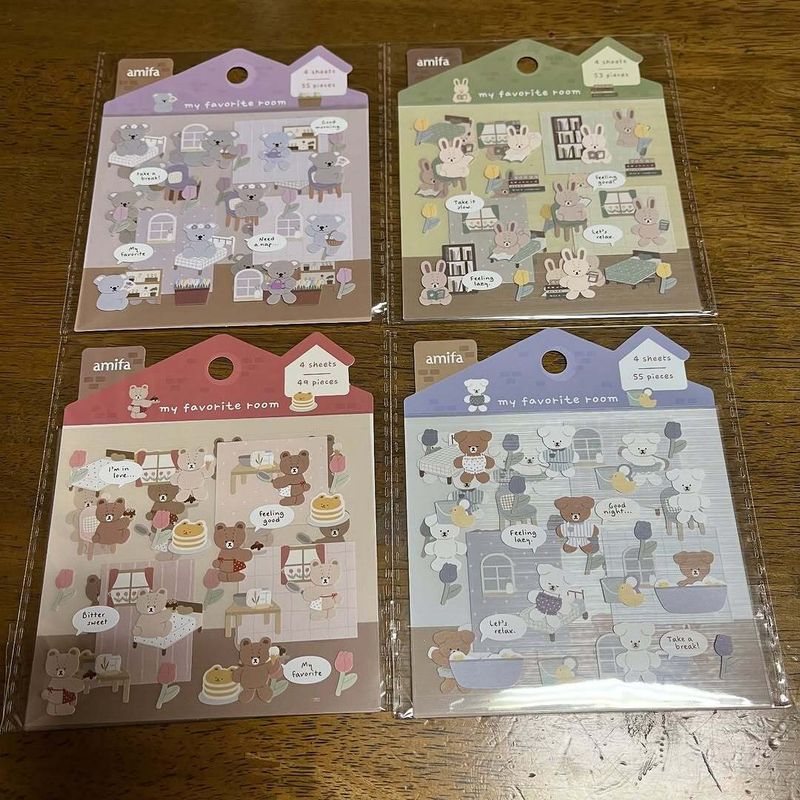 These products are packets of "My Favorite Room" stickers from the Amifa brand, and I found them at my local Seria store recently. Each pack was 100 yen plus tax.