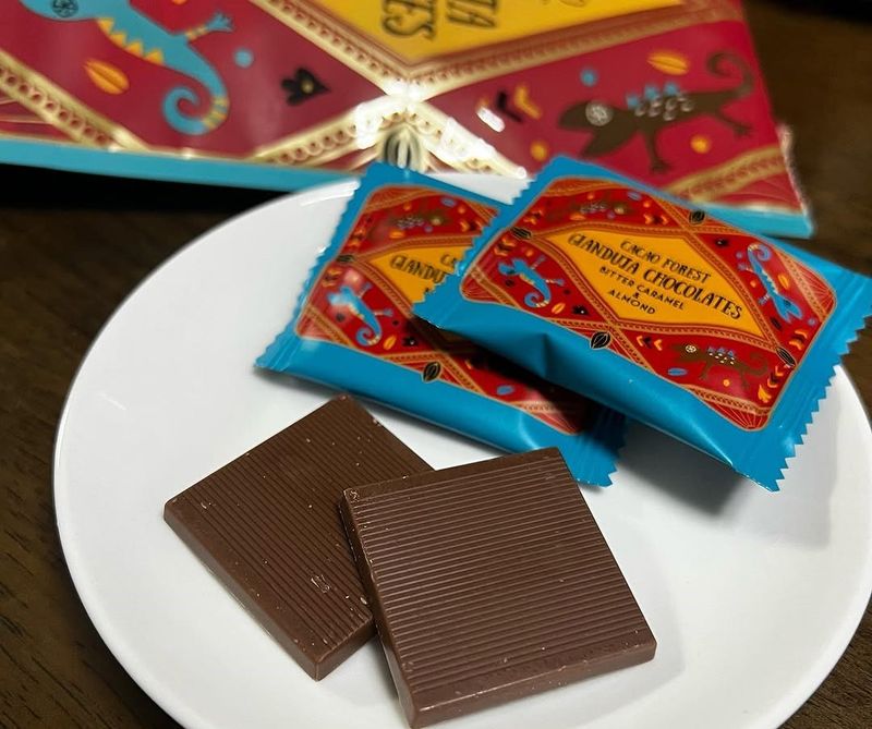This product is a bag of individually wrapped Gianduja chocolates in a bitter caramel and nuts flavor. They're available from Kaldi Coffee Farm for 853 yen including tax.