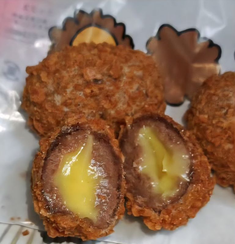 This product is the newly released creme brulee hot donut product from McDonalds stores. You get three pieces, and they are priced at 260 yen including tax.