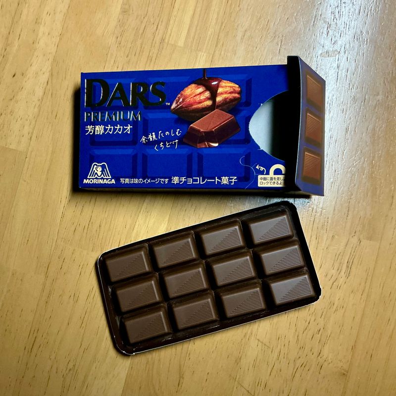 Morinaga Confectionery's premium brand, Dars Cholocate, offers Dars Premium Hojun Cacao. The package contains 12 tablets of chocolate treats made with hazelnut paste.
