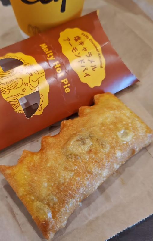 This product is a salty caramel almond pie, and it's a limited time offering available from McDonald's stores across the country. It was priced at 220 yen including tax.