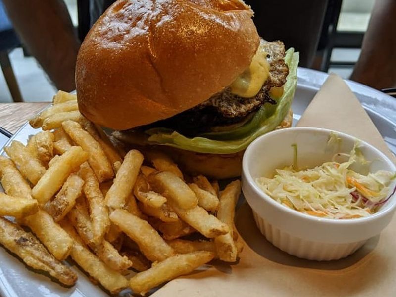 Craving a good burger in Tachikawa? I really liked Under the Cascade when we were in the area recently. It's located at the Green Springs Tachikawa complex, and the menu takes nods from American diner culture but with a Japanese spin. There are a variety of delicious burgers including some unusual offerings, including a baked apple burger and teriyaki egg burger, but they have regular hamburgers and cheeseburgers too. They also offer grill plates (steak, rice, fries, salad), taco rice, poke bowls, and more. The atmosphere is really nice, it's a trendy premises but still felt family friendly.