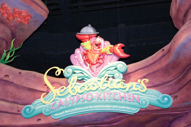 Sebastian's Calypso Kitchen is located in the Mermaid Lagoon area of Disneysea. They sell snacks and light meals, such as pizza and curry. Like everywhere in Disney, you have to queue to order your food. But the seating area is large, with 580 seats, so you can generally find a seat. Especially as a lot of people get their food to go. Its a nice place to sit too, like being in Triton's kingdom under the sea!