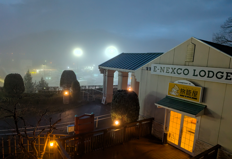 This was the most nostalgia inducing place that I've ever stayed in Japan because it feels very much like a Motel 6 but cleaner and kept to a Japanese standard in many ways. The vending machines weren't great and the only place to buy food when we got there was the little restaurant and souvenir shop that was a small walk away. This day itself was fine and the beds weren't super comfortable but there wasn't anything wrong with them either. It was what's one should expect from a three-star hotel that is located in a service area off of the highway. That said, it did have a lovely foggy/misty/fantastical view for the evening. We stayed on Christmas night actually and they had a Christmas tree in the lobby that made me feel a little bit more at home. One important note was that my husband had said to bring my daughter a toothbrush which made me think that they would give us two toothbrushes, one for each adult. Unfortunately they charge 50 Yen for each toothbrush and I had not brought mine which became a whole other problem. It is meant to be a small and affordable but comfortable enough space to sleep in for those making a long trek, and it was definitely significantly better than driving while too tired to function or pulling over on the side of the road to pass out for a little while.