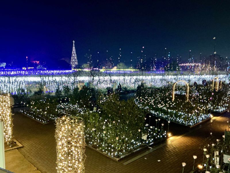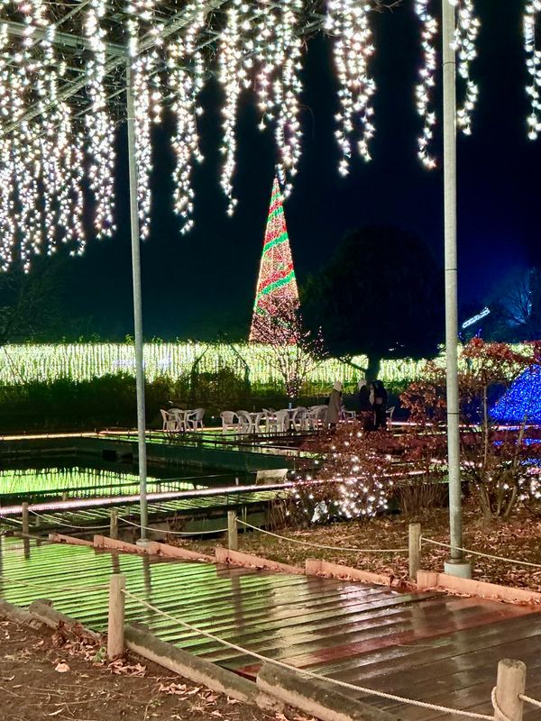 I'm surprised at the absence of reviews of this spacious flower park. Ashikaga Flower Park is open year-round and puts massive LED light displays in winter. According to the park, it is listed as one of the three big winter illumination spots in Japan. The 2025 event, Hikari no Hana no Tei, lights up the hoary wisteria arbors with tasteful graduated colours set to classical-inspired music. The park's concessions and plant nursery are open, too. You can pick up ornamental cabbage plants in a bewildering variety of colours and sizes, plus poinsettias, small and large. It's a good spot to take photos of your family and/or your date.