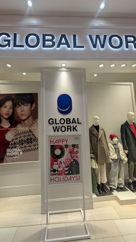 My overall impression of "Global Work", a fashion store in Peony Walk, is it is quite similar to Uniqlo in the price, quality and selection of clothes. However, Global Work offers more colors and has a better range of bags and accessories. After trying several different clothes stores for a hoodie for my fifth grade daughter, we finally found the ideal one in this store. A shout out to the helpful, friendly staff too!