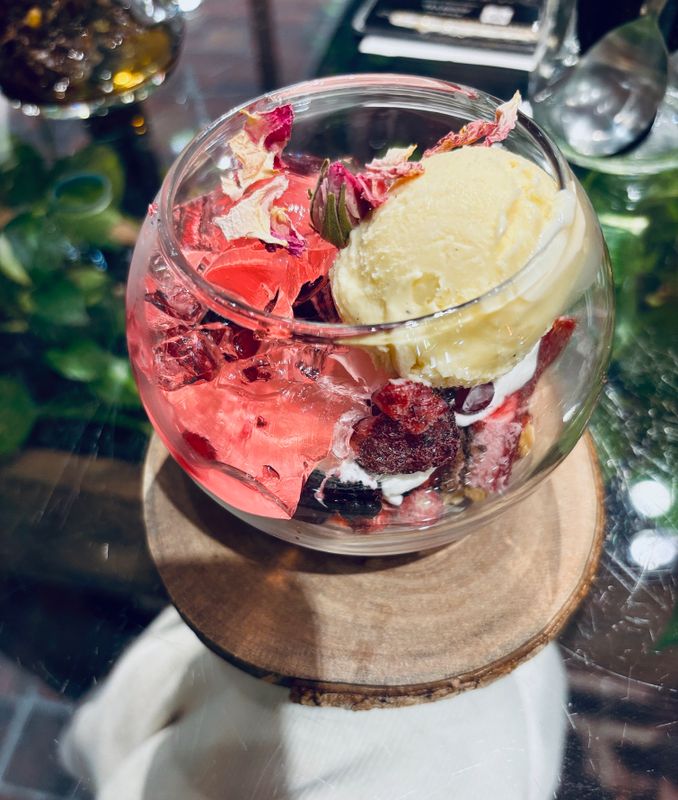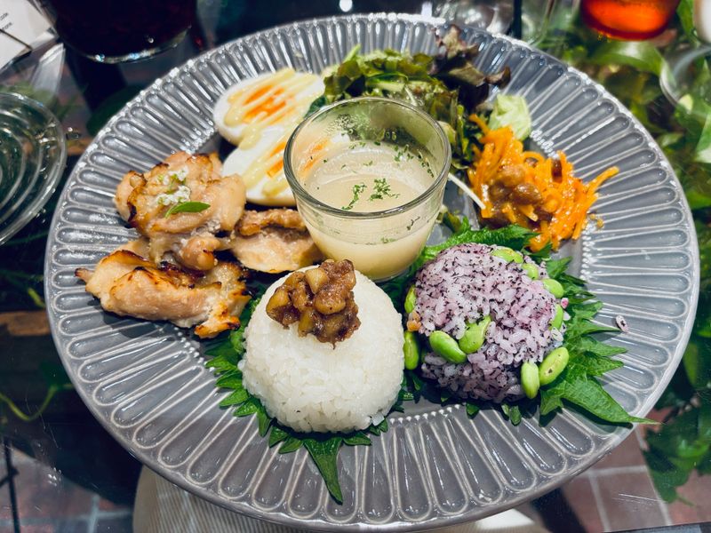 This cafe in conveniently situated inside the Atre shopping center in Kichijouji station. The interior is decorated very nicely with lots of flowers. For lunch you can get a plate lunch with either rice of french toast. For desserts you can choose from several that all are decorated with edible flowers.