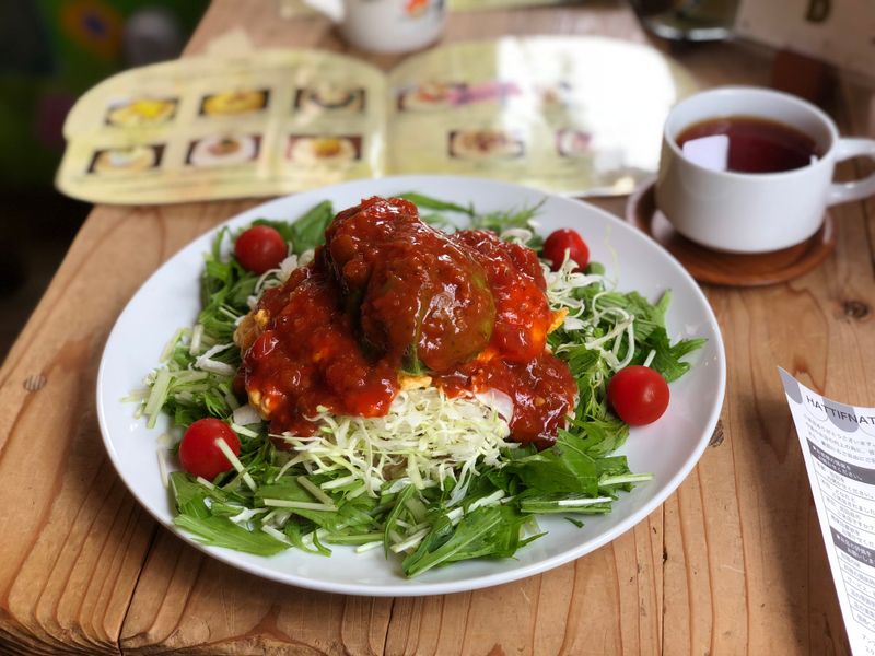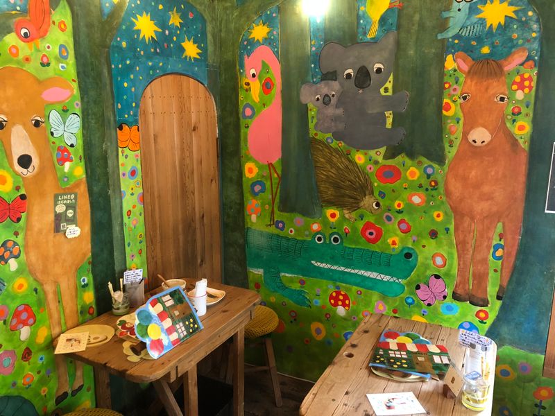 In this Café everything is too small. It starts with the door. It’s so small you have to crouch to enter. Same goes for tables and seats. The food has average prices and was really good. The main dishes all seem pretty healthy. They offer several different taco rice variants with a lot of greens and tomato curry with whole grain rice. On the dessert menu you find a lot of cute cakes which are all handmade. The drink menu offers several different latte drinks that come with a random latte art. They also have dessert plates for birthdays and anniversarys. The Café is located in a shopping street in Koenji and perfect for a short break after a shopping trip. On weekdays it’s not very crowded but on weekends you might have to wait a bit.