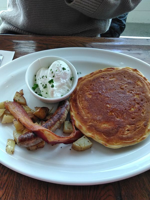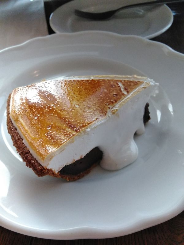 Bubby's has a menu that's a fairly close shot to what we could find over in North America. Their fries have a good level of seasoning and are thick-cut. I had their blue cheeseburger, and it tasted pretty good with only a moderate touch of the blue cheese. The size of the burger is a bit small for the price of it though, but since it came with the fries and a long slice of pickle, I suppose I can't complain about that. The other order was the griddle special. You have a choice of how you like your eggs and if you want potatoes, but the griddle and bacon are standard. The griddle is really good, and tastes like somthing that would come from your kitchen, so it's a pretty rare find in Tokyo. The restaurant cooks can poach their eggs really well too. For dessert, we had a seasonal S'mores pie. It had a thick top layer of actual roasted marshmallow and a bottom layer of fudge, all contained in a crust of graham. I wasn't a fan of the graham crust's texture as I felt it crumbled too easily and there were little hard parts, but it tasted good. The staff also asked if we wanted it heated before serving as well, so that was nice. The restaurant itself can get really busy though, so there might be a lineup. The seating isn't tiny, but space is limited. Decor is very reminiscent of a lodge, which is an interesting choice considered that it's right in the middle of a shopping area.