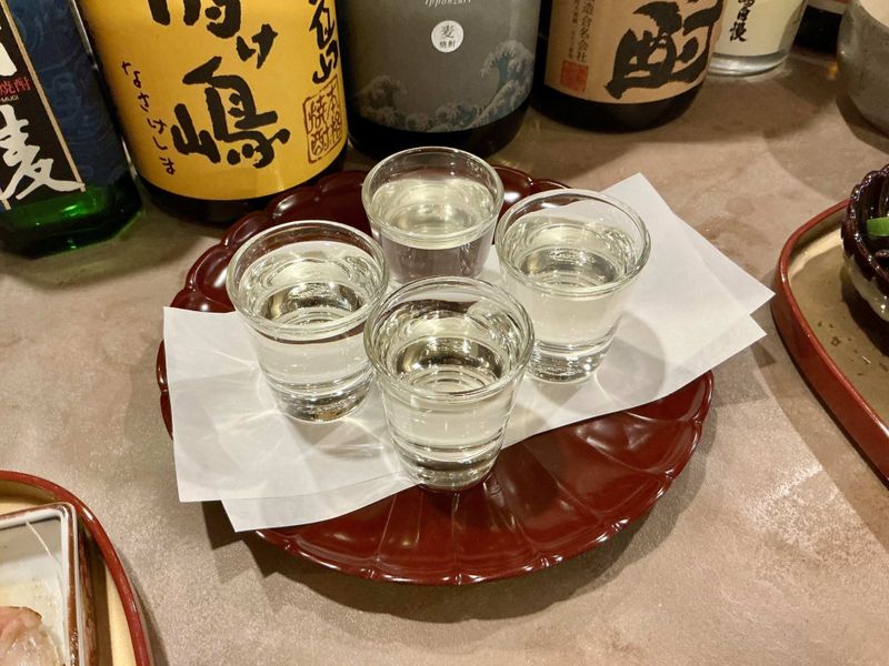 Kifune, a small restaurant with a long counter for seating, is an experience. The chefs prepare seasonal produce and seafood in delicous teishoku with fusion and traditional flavours. We had braised fish, pork prepared as tsukudani, a lemon and herb curry, and small sides. The specialty is Izu Seven Islands and Ogasawara cusine. The chefs also have a great selection of sake and serve "flights" so you can compare. The restaurant is open from Friday to Sunday and some holidays for lunch and dinner.