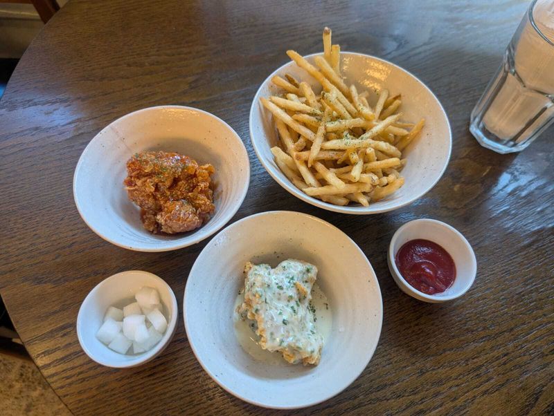 I've been to this restaurant multiple times and it never has never disappointed me. They have a huge variety of Korean Chicken flavors which are all unique from one another. The chicken itself is super juicy and the outer coating is super crunchy. I love to pair it up with a side of French Fries because they are thinly cut and have a great crunch too. Tying it all up is the staple Korean side dish of pickled radish called Chicken-mu. The staff is efficient and was kind enough to notice that since I am a Muslim, they warned me against certain things on the menu which weren't halal. I consider this a huge sign of empathy and concern which I highly appreciate.