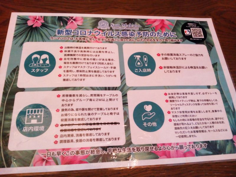 Hawaiian food in Japan always makes me laugh. Loco Moco Burgers and pancakes are not something I ate when I visited Hawaii. Anyway, this is that type of Hawaiian restaurant. They had cheesy Hawaiian music and good food, but it's a bit pricy for the portions. One thing they do get right is being very careful about checking customers temperatures, leaving windows open a crack, providing barriers between seating areas, etc. There was a short wait on a Sunday afternoon after the lunch time had ended. I think there are less than ten tables though - the restaurant looks about the size of a house with lots of small rooms and nooks for seating. We might go again sometime for the lunch menu, although it's more limited.