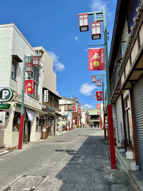 Hokekyoji, the Nichiren Buddhist temple in Ichikawa City, has an old-fashioned sando, or approach street. The slight incline up to the temple starts at Nakayama Hokekyoji Somon, a gate that's also referred to as Kuromon, the black gate. The shopping street leading to the temple is a mix of modern and vintage buildings with a lot of charm. You'll find old-fashioned confectioners, cafes, osozai shops (the Japanese answer to delis), soba, sushi, and gourmet restaurants. I was pressed for time as I stopped here briefly, intending to see the temple. I'd say you could easily spend an hour or two browsing the shops and grazing the food choices to round out your trip to Hokekyoji. This review is a tease as the photo shows the sando looking towards the temple. The Kuromon is behind and down the slope from the photo location.