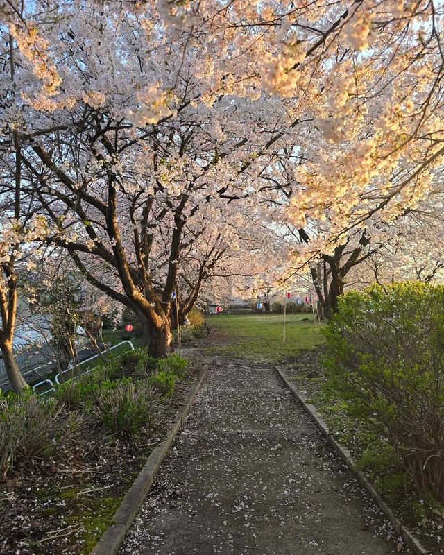 Kamishinden Park is somewhere that I feel would be pretty run of the mill any other time of year outside spring, since it's one of those fairly basic Japanese parks with a few play equipment pieces and some park benches. In saying that, when the blossoms are blooming it's a real gem, and there are usually lanterns hung up making for a really scenic atmosphere. Best of all it's not heavily trafficked with people! No admission fee so easy on the budget, too! :)