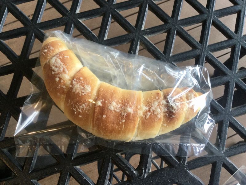 If you happen to transit through Shin-Kamagaya Station on the way to Narita or Haneda Airports, you might want to make a pit stop here. There is a chain store bakery, but I recommend the artisanal bakery on the north side of the gate to the Hokuso/Keisei station. Canis Minor is a bakery with a patio with a few tables just steps away from the station. The small shop bakes barley, brown rice, and whole wheat bread. The baking of the varieities is staggered, from 10:15 and 12:45 most days. I picked up a crescent of shiopan cheese for 110 yen. It's fragrant with sharp cheese, crisp on the outside and chewy on the inside. Shiopan cheese is limited to three items per customer. Note that the shop is closed on some Sundays, Mondays and holidays. https://www.hmcorp.co.jp/minor/