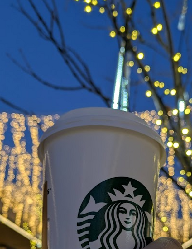 I've been to the outlet on a weekday and a weekend and the Starbucks here seems to be much busier on weekends. We had to queue quite a while on our last visit. The seating area is larger than my local branch, but probably medium sized overall. They have some chairs and tables outside. I didn't get a photo in store, but the photo in this post is of one of the drinks we got, backdropped by the current illumination in the outlet (January 2026).