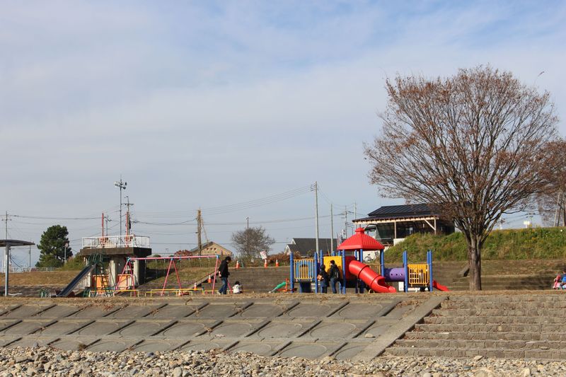 Arakawamizube park is a riverside park beside Kitsuregawa Roadside station in Sakura City in Tochigi prefecture. There is a relatively new playground in the park. It is mainly suited to small, preschool aged children, but it has some swings and a two diggers which might be of interest to older children too. Currently part of the park is still closed off after sustaining damage in typhoon Hagibis earlier in the year. There are dozens of barbecue pits under a permanent roof along the riverside. You can use them in season once you have your own charcoal and supplies with you. There is a tap for washing near these pits. Parking is along the side of the roadside station and is free.