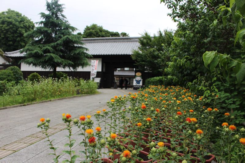 A Furusato Kan is a type of folk museum - a period building open to the public. This one in Okegawa is the former home of an industrialist. It was restored and preserved as an example of a Meiji period country town house. The Nagayamon, literally ‘long house gate’, (or gate house as we might say) is particularly beautiful. There a few other buildings on the grounds that showcase Japanese architecture from the period. There is also a beautiful garden and a small bamboo wood. In June, you can see 'benibana' safflowers in a field across the road.