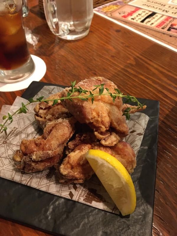 If you enjoy a cold beer and appreciate having tasty foods to pair with them, the Tachikawa Beer Hall is a good place to check out. They have a variety of delicious menu offerings, including karaage, pizzas, rice dishes, and even fish and chips! They also provided edamame as "service" while we waited for our food. It's very close to the station which makes it nice if you're having a few drinks so you don't have to drive.