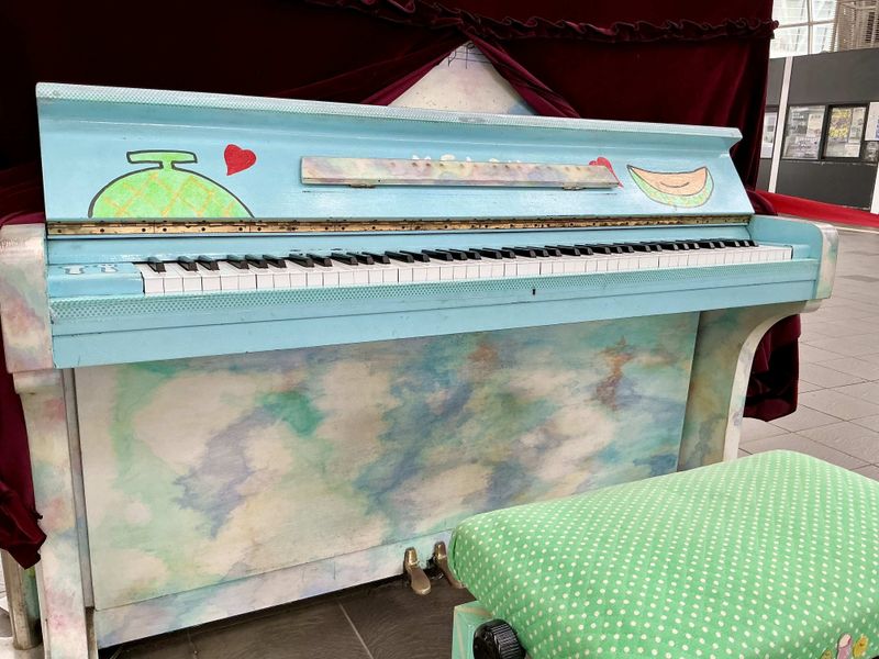 Saitama-Shintoshin Station connects the Keihin-Tohoku, Utsunomiya, and Takasaki train lines. The station's concourse designed by Edward Suzuki Architects, has a sweeping, rounded canopy that evokes clouds and waves. This is a nod to historic Hikawa Shrine with its Yakumo crest. The station is easy to navigate, and the elevated concourse leads to the Shintoshin business district on the west side and Cocoon City shopping complex on the east side. I've visited twice in the last six months, and each time, plunked away at the street piano on the concourse. The piano has a bright sound that rings off the curved roof.